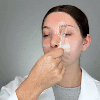 Place the 3 small pieces. Here are some suggestions: Sides of your nose, under your eyes, between your eyebrows, smile lines, lips, and more.